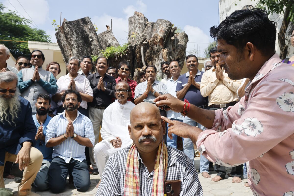 पर्यावरण प्रहरी द्वय मुकेश रजत वर्मा और चंद्रशेखर गवली ने वृक्ष को “गुरु स्वरूप” मानकर अपने सिर का मुंडन कर केश दान किया गया और शहर में हो रही अनियंत्रित वृक्ष कटाई के विरोध का यह प्रतीकात्मक संदेश दिया। उपस्थित नागरिकों ने दीपदान कर इस वृक्ष के पुनर्जीवन के लिए ‘इतनी शक्ति हमें देना दाता’ प्रार्थना की और सामूहिक रूप से पर्यावरण संरक्षण का संकल्प लिया।